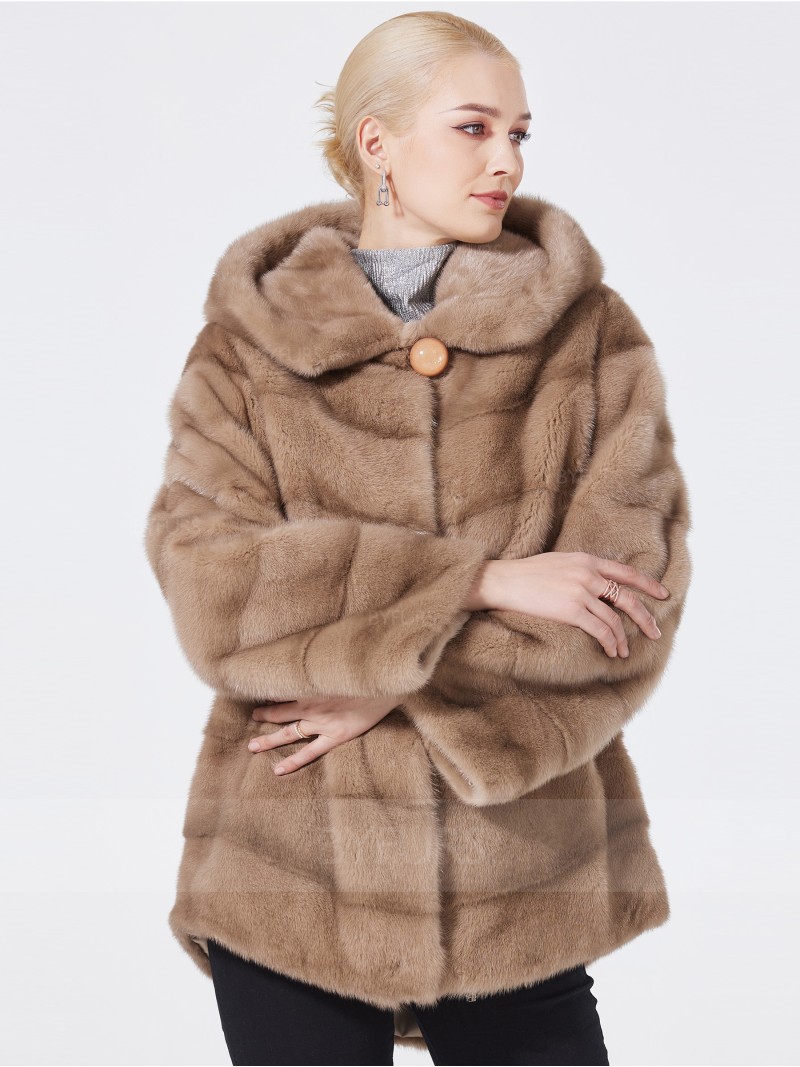 Chaqueta De Mujer De Piel De Visón Real De Longitud Recortada Con Capucha