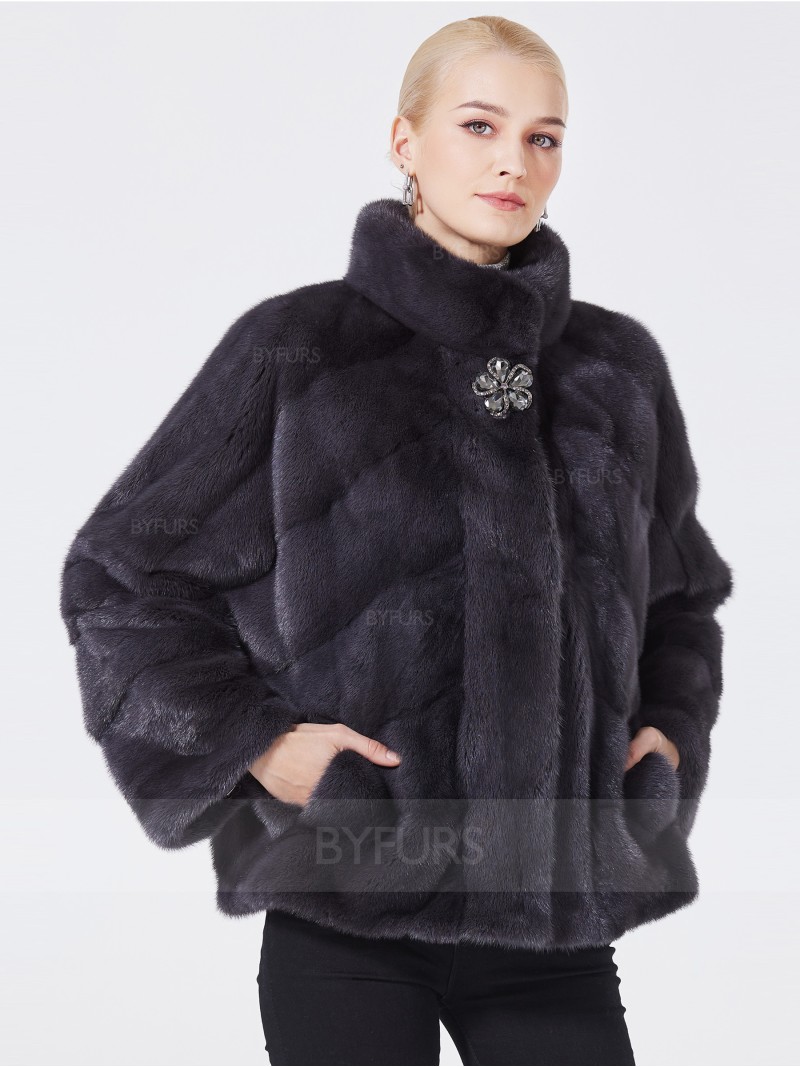 Chaqueta De Piel De Visón De Longitud Recortada Con Cuello Levantado Para Mujer
