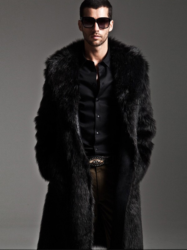 Men Long Faux Fur Coat Square Collar Multiple Color Windbreaker