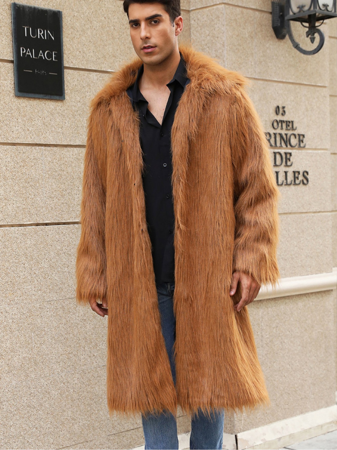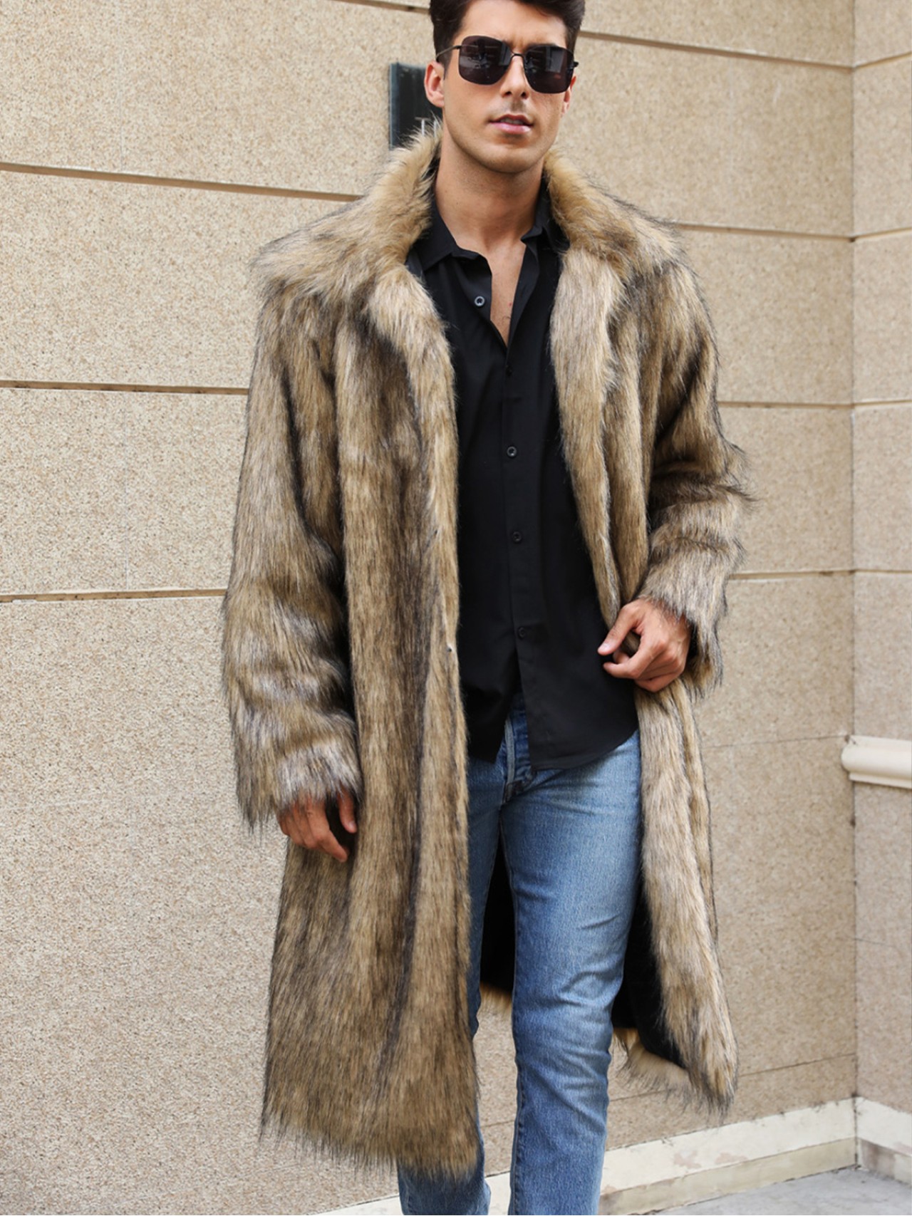 Buy men long faux fur coat square collar multiple color windbreaker on BYFURS, High Quality, Fastest Delivery.